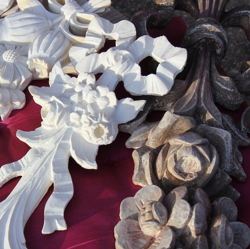 Bouquets de fleurs verticales ou horizontales; paniers avec motifs floraux ou décors de fruits.